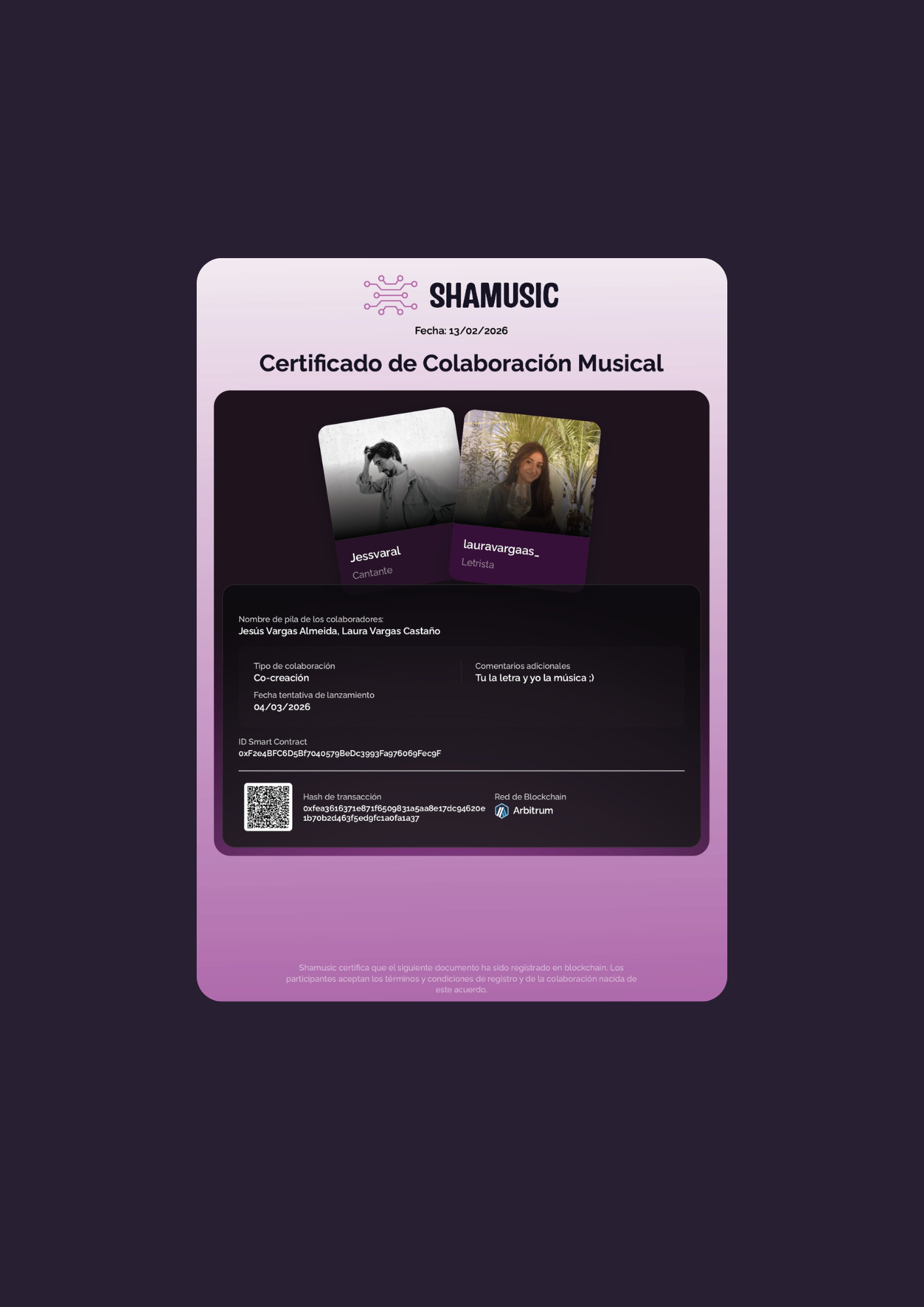 Shamusic nace con un enfoque diferente: ofrecer a los artistas una forma sencilla de proteger sus obras, dejar constancia de autoría y organizar colaboraciones, sin depender de terceros.