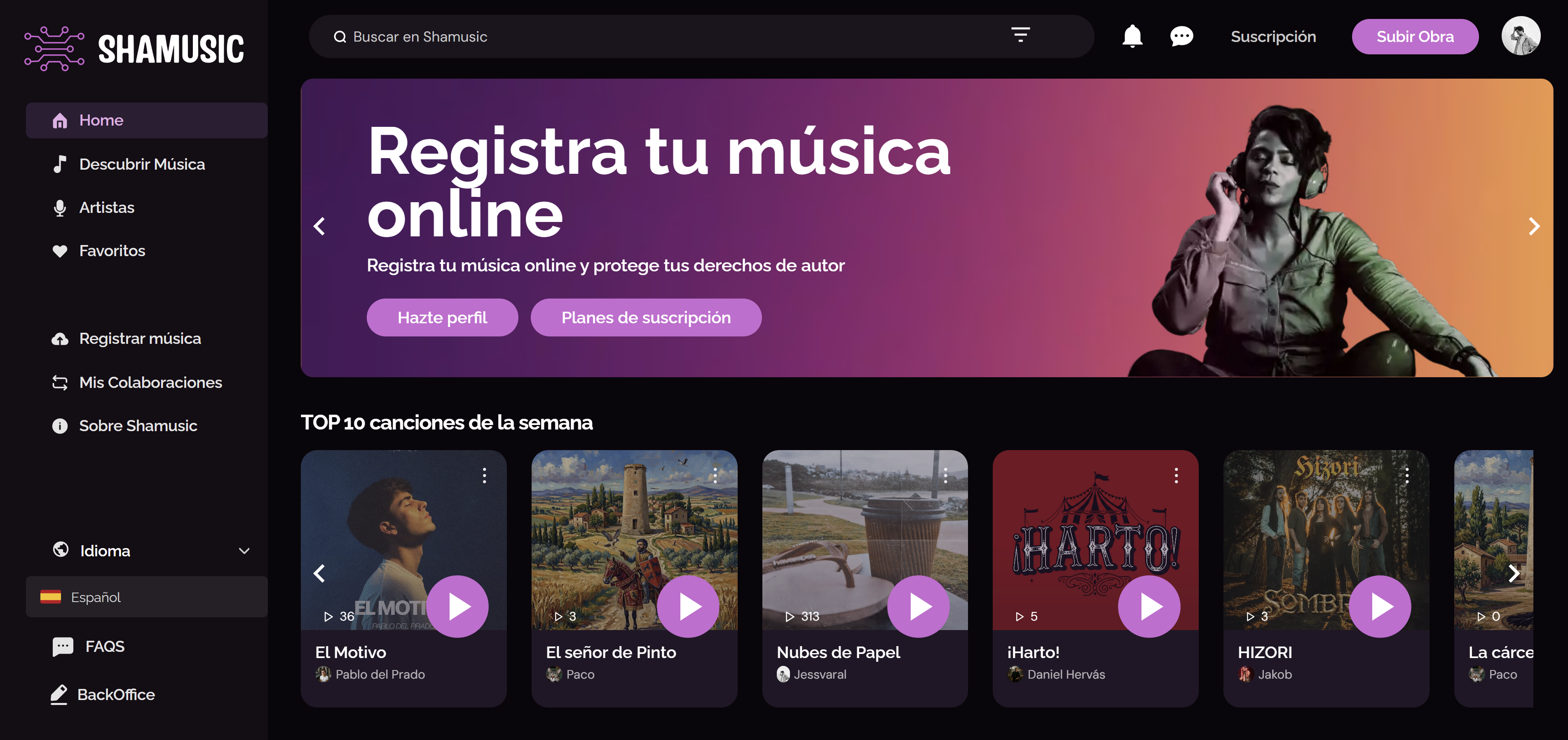 Pablo ha entrado en el TOP 10 artistas de la semana en Shamusic y puedes encontrar su perfil AQUI.