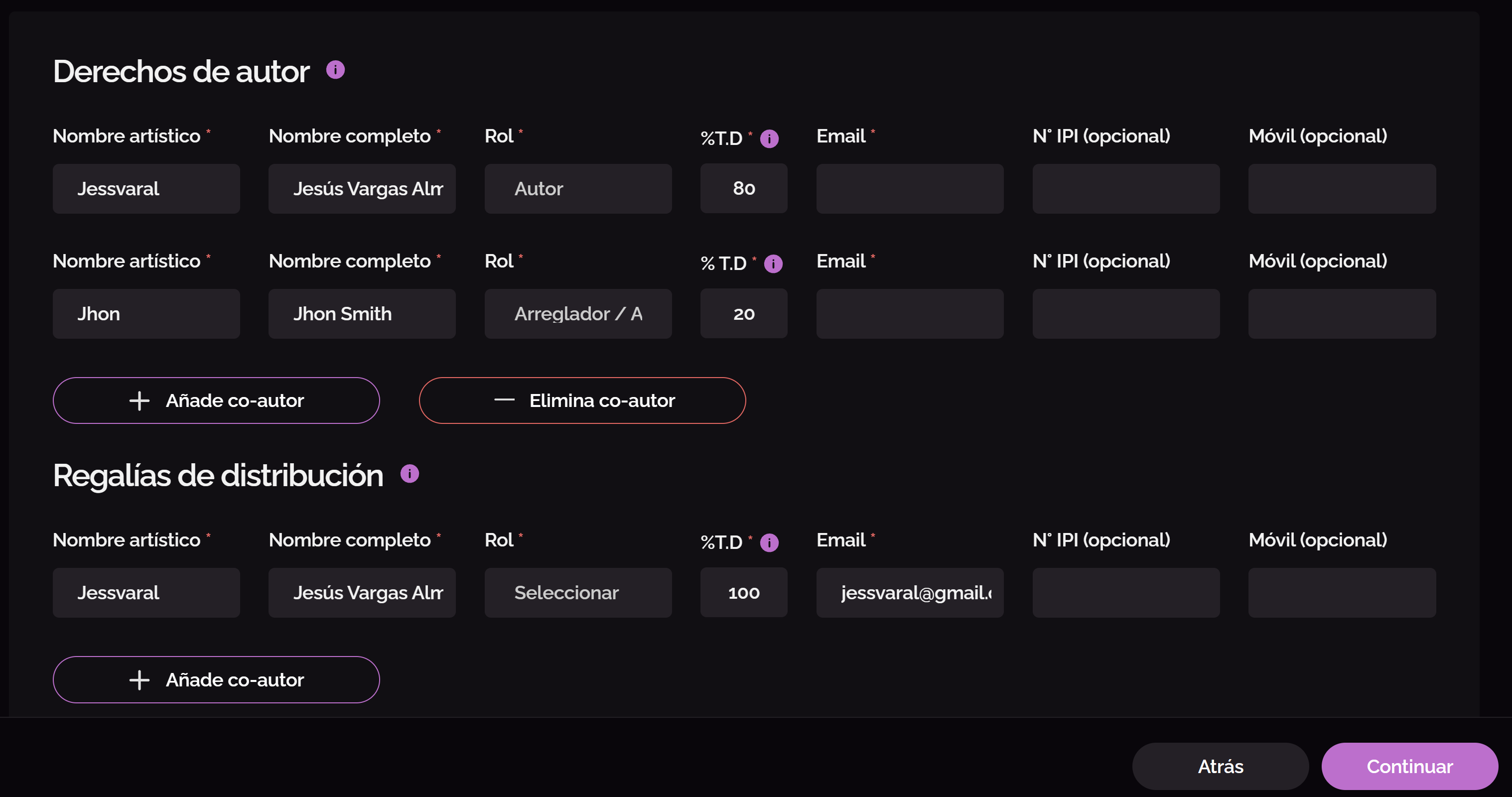 Once your work is protected, define who has what percentage in the song.