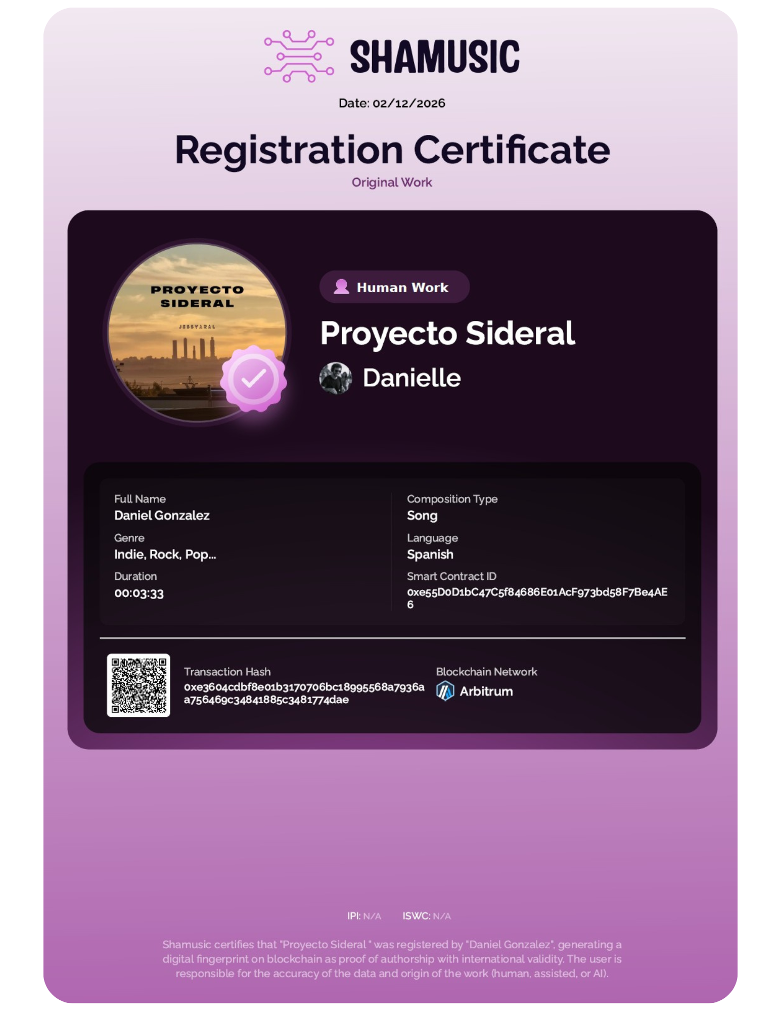 What differentiates Shamusic from other registration systems is the use of blockchain technology. This technology generates a record that cannot be altered or manipulated, guaranteeing that the information associated with your work remains intact from the moment of registration.