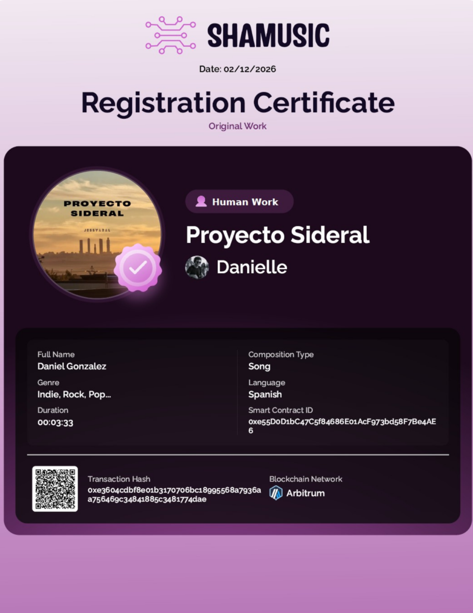 By having your song pre-registered and with its blockchain hash, you have priority of rights over any subsequent similar work, provided you can prove your creative authorship. If you have any problems you can always write to us at info@shamusic.es.